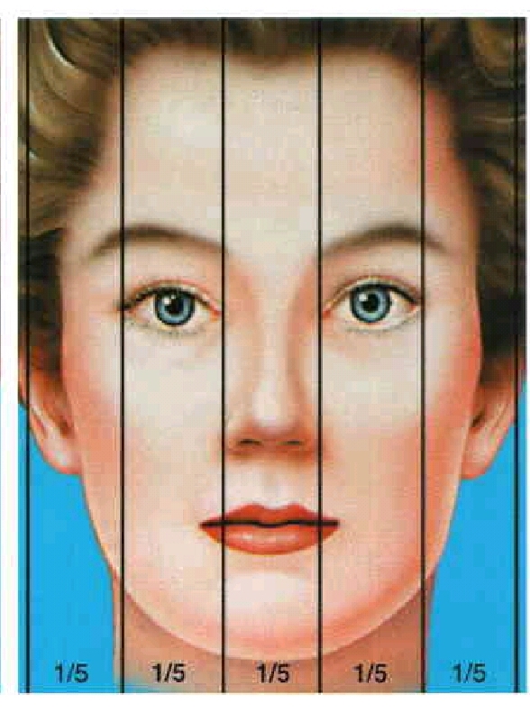 . پهناي قسمت قاعده بيني (يا فاصله گوشه پره هاي بيني از هم ) در حالت نرمال تقريبا به اندازه پهناي عرض يک چشم وحدودا به اندازه يک پنجم پهناي عرض صورت است.